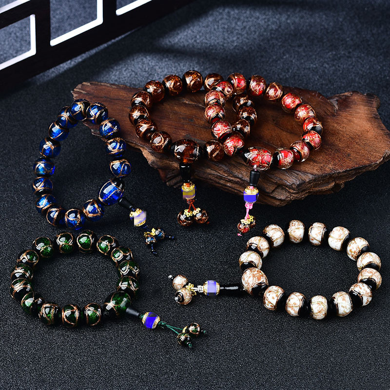 香灰琉璃佛珠手串链抖音小红书明星同款文玩北京瓷红蓝绿白金棕色