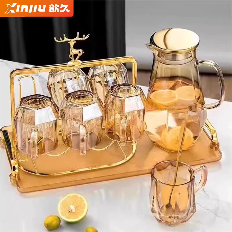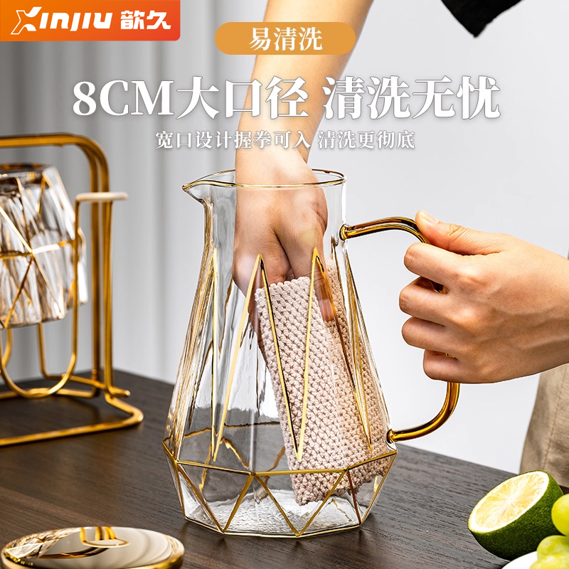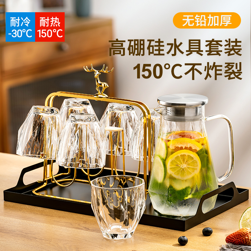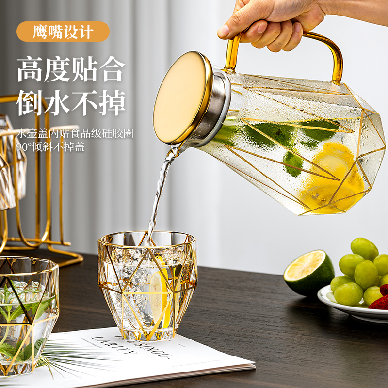 高级感玻璃冷水壶家用耐高温喝水杯子套装大容量凉水壶钻石泡茶壶