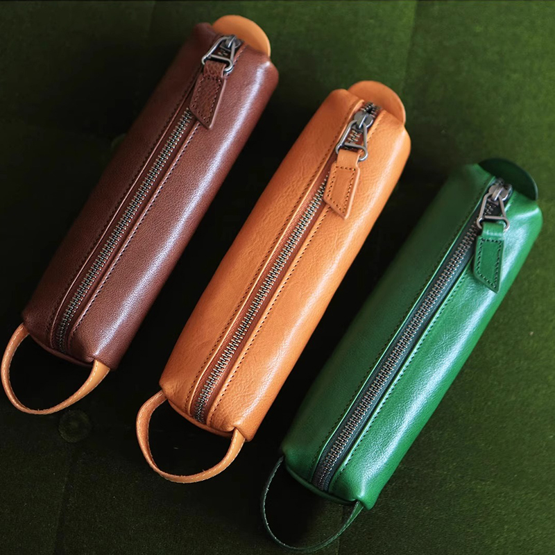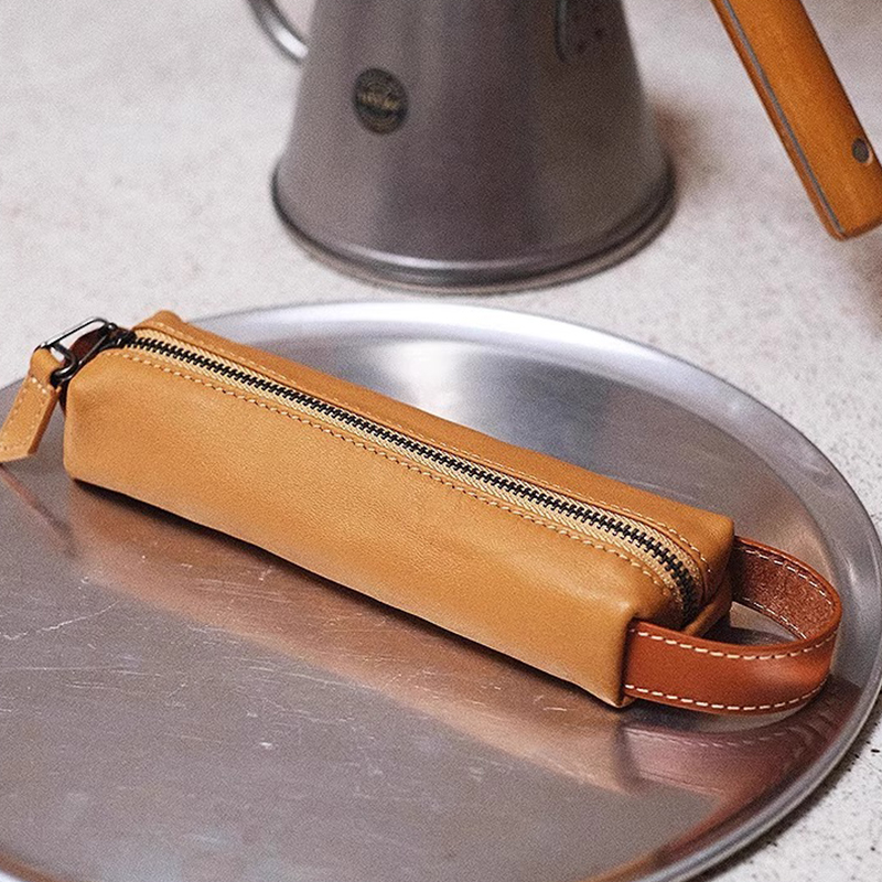 2025新款笔袋小号铅笔袋复古真皮质感文具袋刻刀袋小巧便携收纳袋