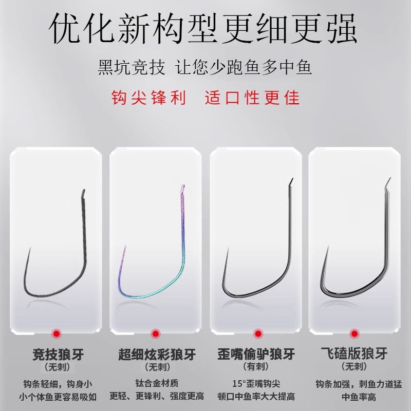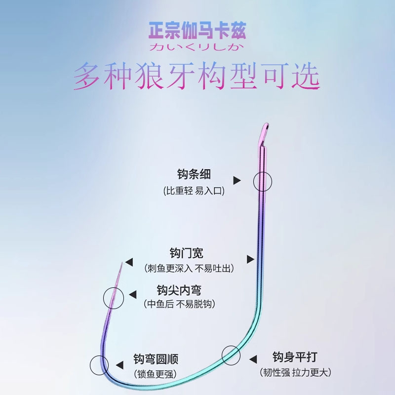 伽马卡兹狼牙竞技岩鱼钩散装改良黑坑偷驴专用细条钛合金极细加强