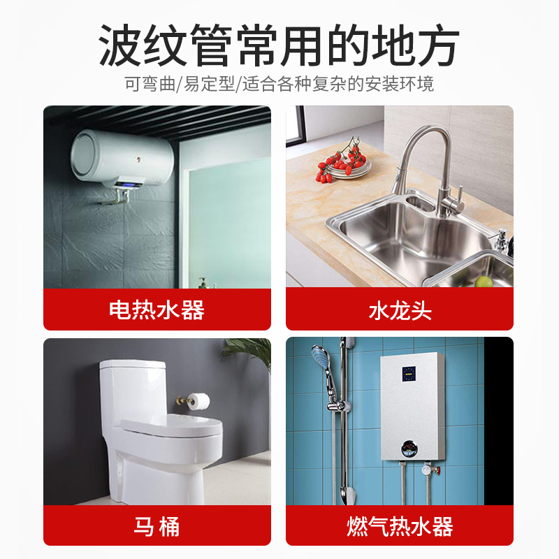 304不锈钢波纹管4分6分1寸高压热水器马桶金属软管水管燃气外丝