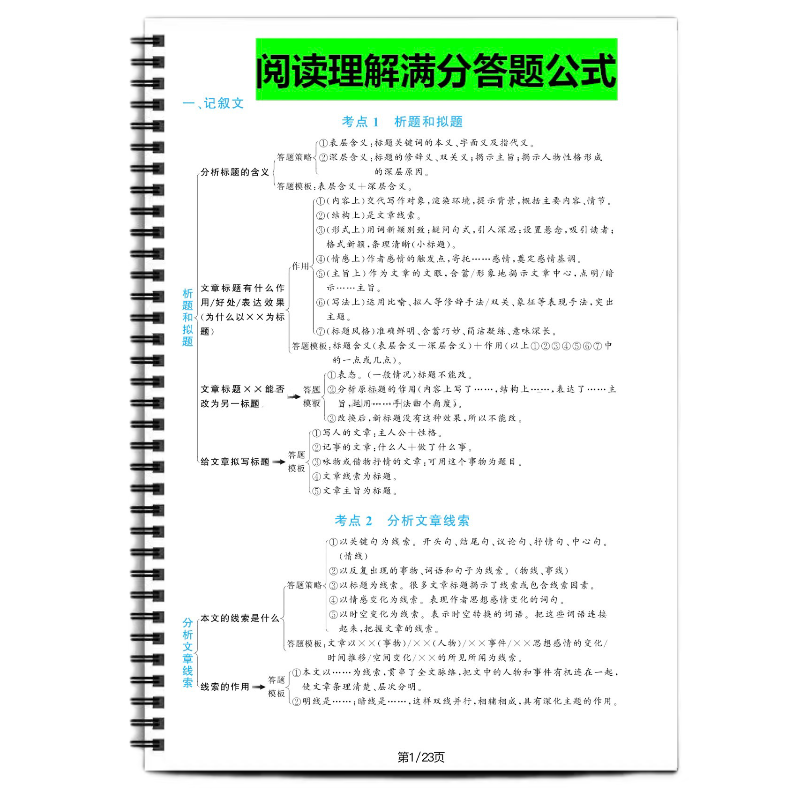 小学语文阅读理解满分答题公式考点分类分析记叙说明文议论文文言文古诗词典型举例思路解析阅读短文人教版语文同步阅读理解