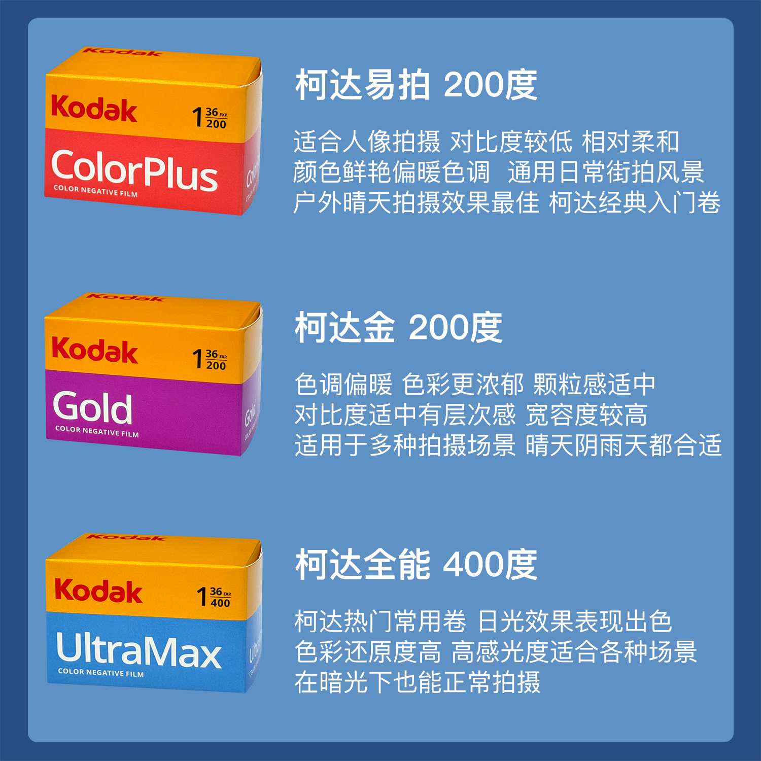 Kodak柯达原装金200易拍全能400彩色人像风景日系通用135胶卷负片