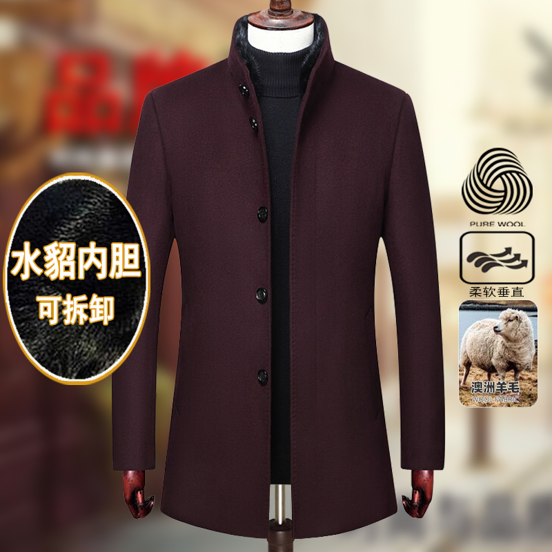 皮尔卡丹纯羊毛大衣男士水貂内胆冬季中年双面羊绒呢子中长款外套