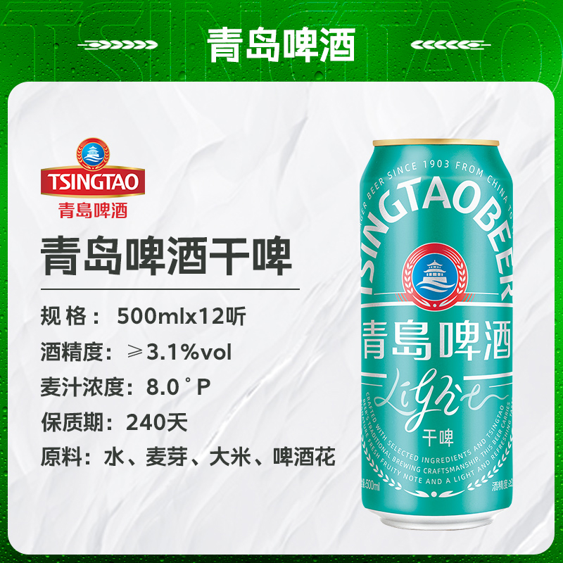 青岛啤酒轻干系列500ml*12听罐啤 干啤清爽轻负担