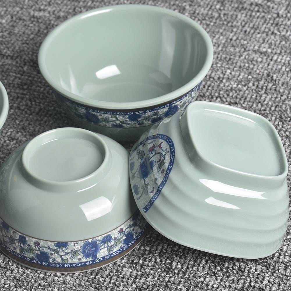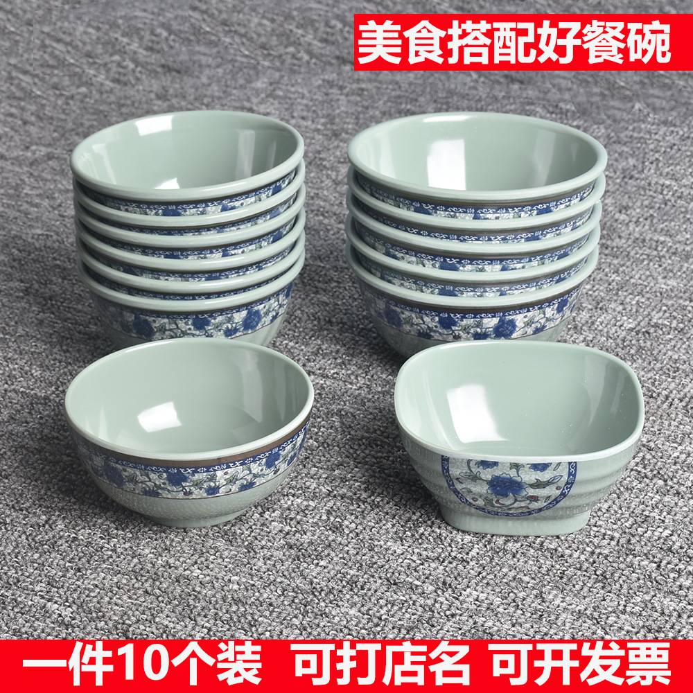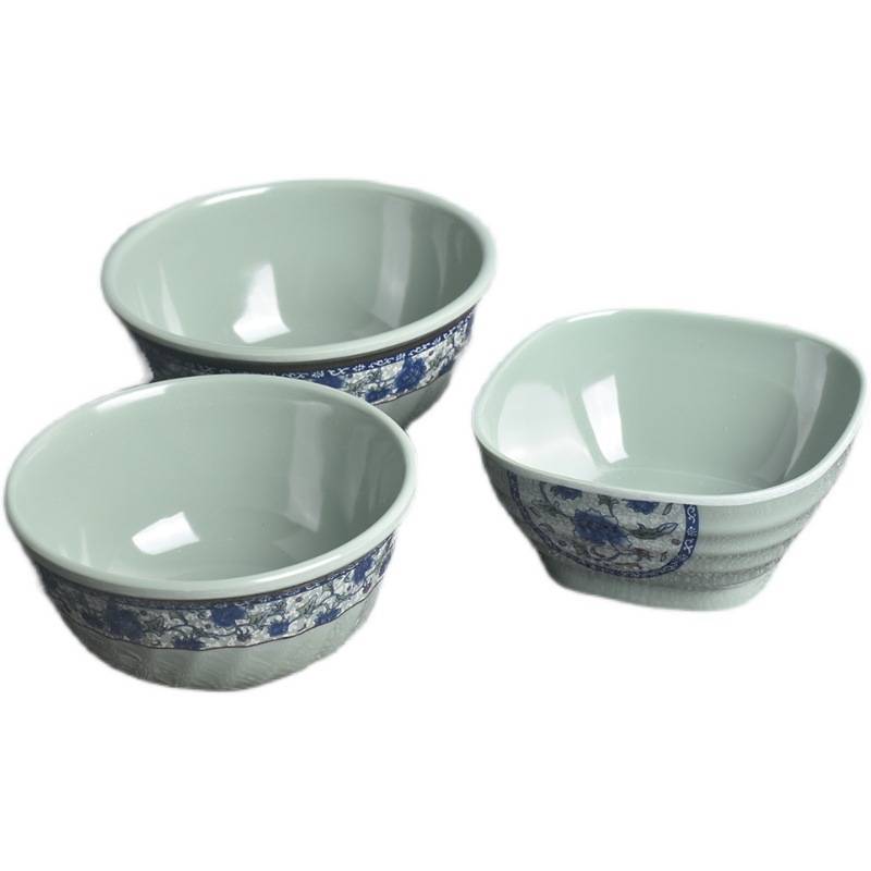 密胺碗塑料中式复古风快餐店大食堂米饭碗汤碗商用粥碗仿瓷青花碗