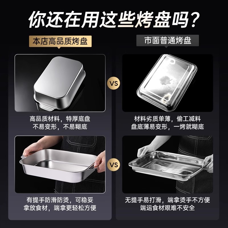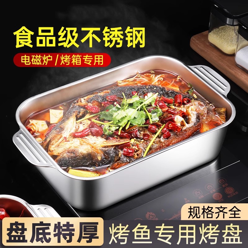 烤鱼盘不锈钢长方形家用食品级加厚电磁炉烤鱼专用烤盘子不粘带盖
