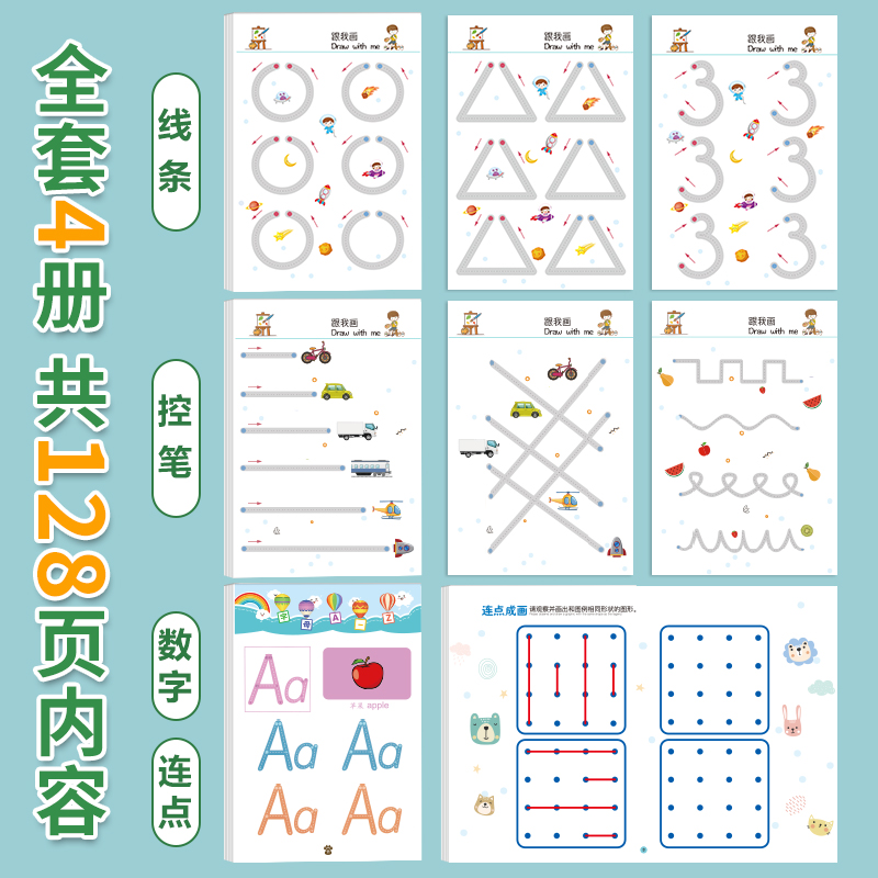 儿童控笔训练字帖幼小衔接描红本幼儿园写字入门练习涂色绘本可擦
