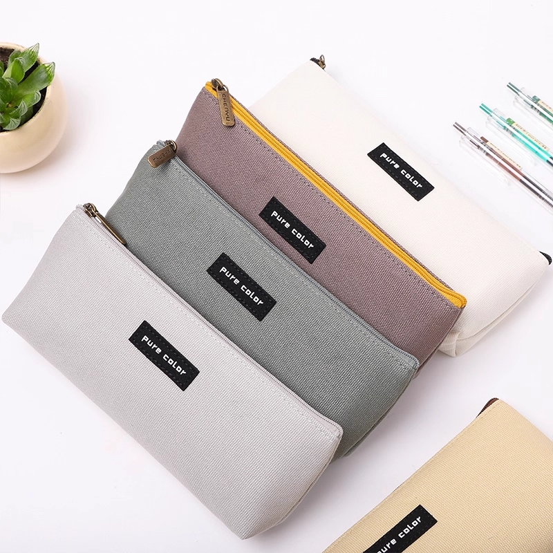 新款帆布笔袋大容量高中生简约文具盒铅笔盒男孩小学生可爱铅笔袋