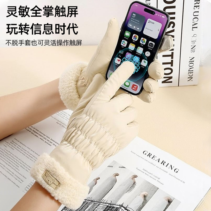 2025年秋冬新品手套女冬季骑车可爱保暖可触屏骑行电动车加绒防寒