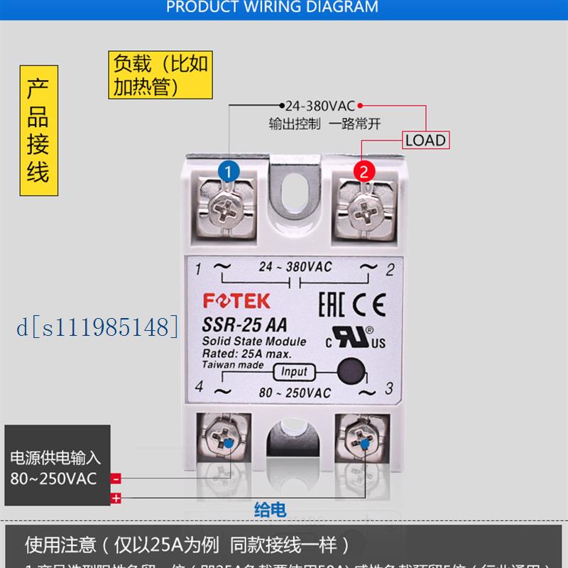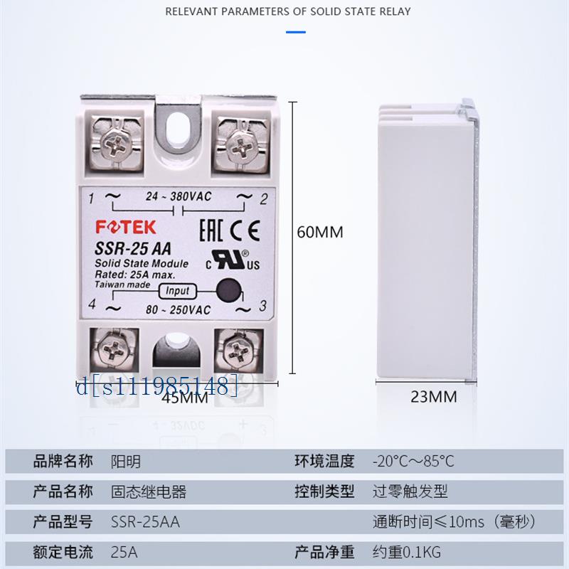 原装进口 FOTEK台湾阳明单相固态继电器SSR-25AA 25A 交流控交流
