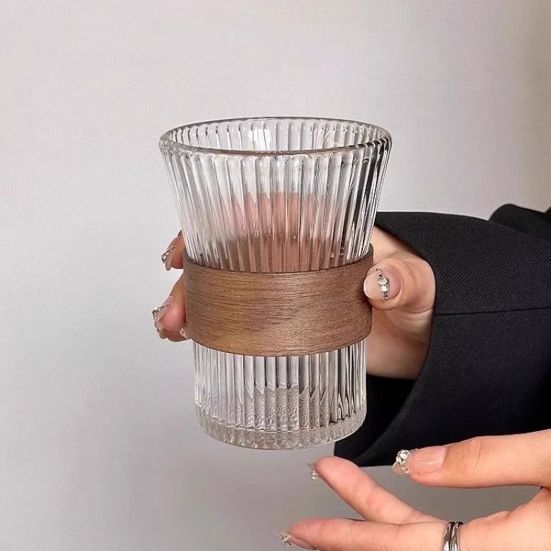 高颜值ins风束腰风琴杯咖啡杯茶杯防烫隔热杯托杯架套装玻璃杯