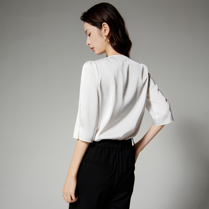 晚白2025年秋新款气质优雅衬衫时尚国风轻中式圆领中袖白衬衫女