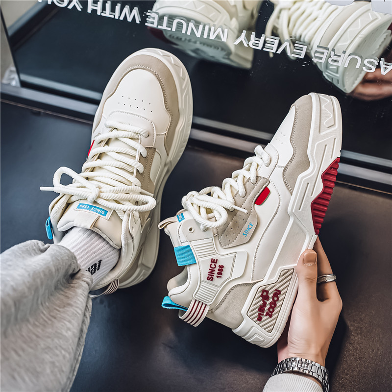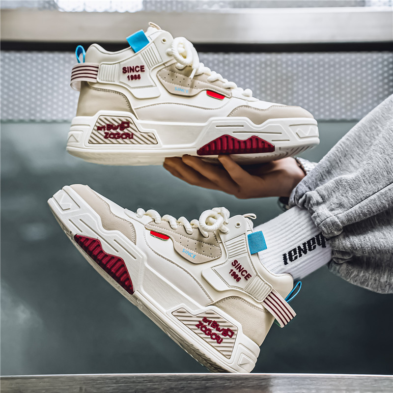 高帮男鞋秋季潮流百搭休闲中帮板鞋青少年学生运动内增高小白潮鞋
