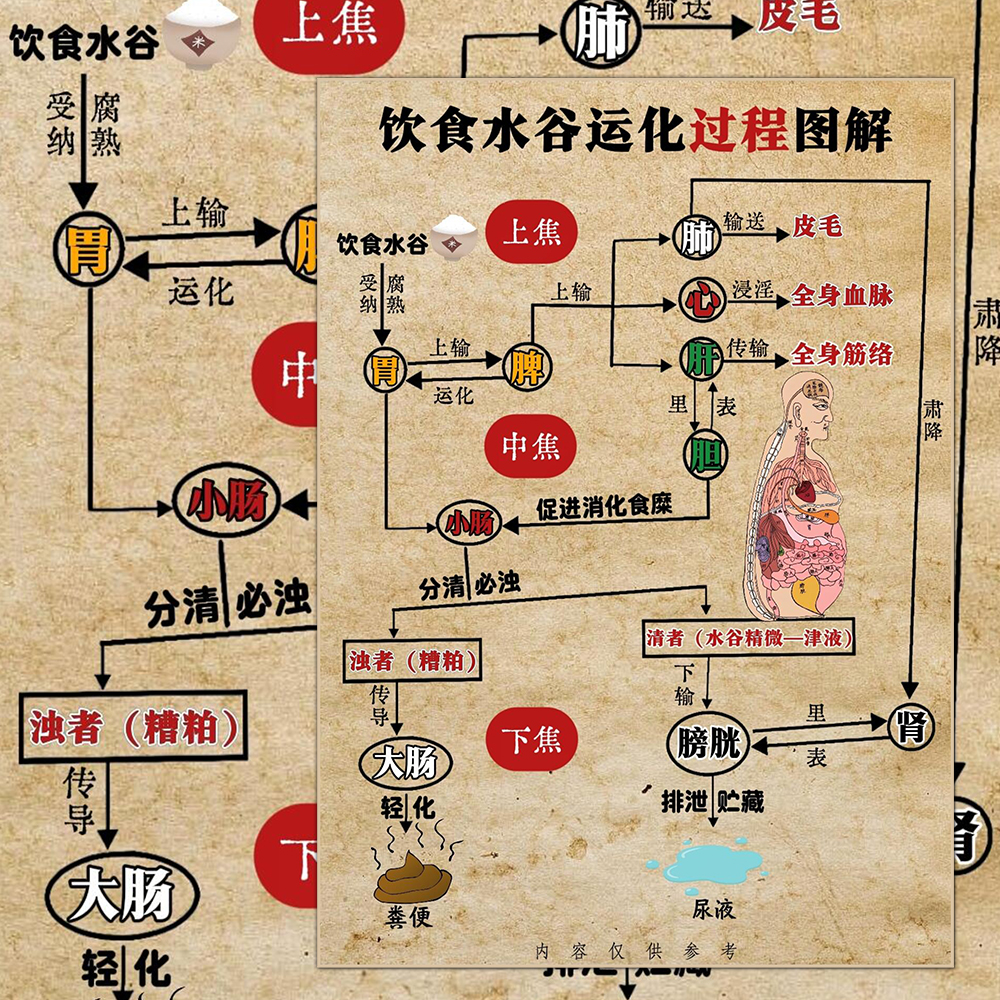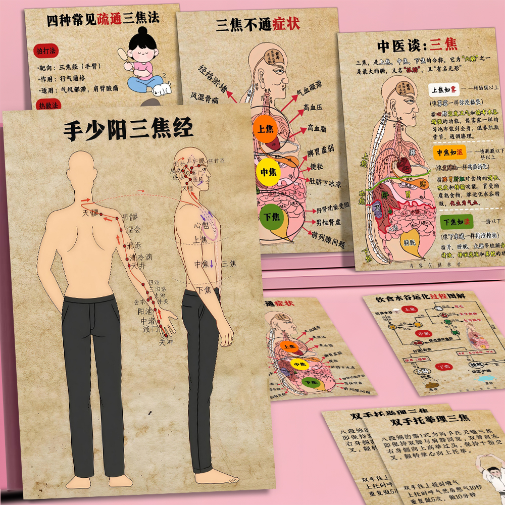 中医谈三焦黄帝内经五脏六腑三焦全身经络疏通症状自查科普贴画