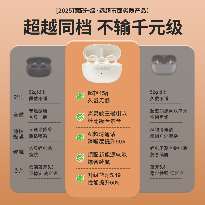 科曼者蓝牙耳机气传导无线挂耳式耳夹不入耳高品质运动防水防汗超长续航