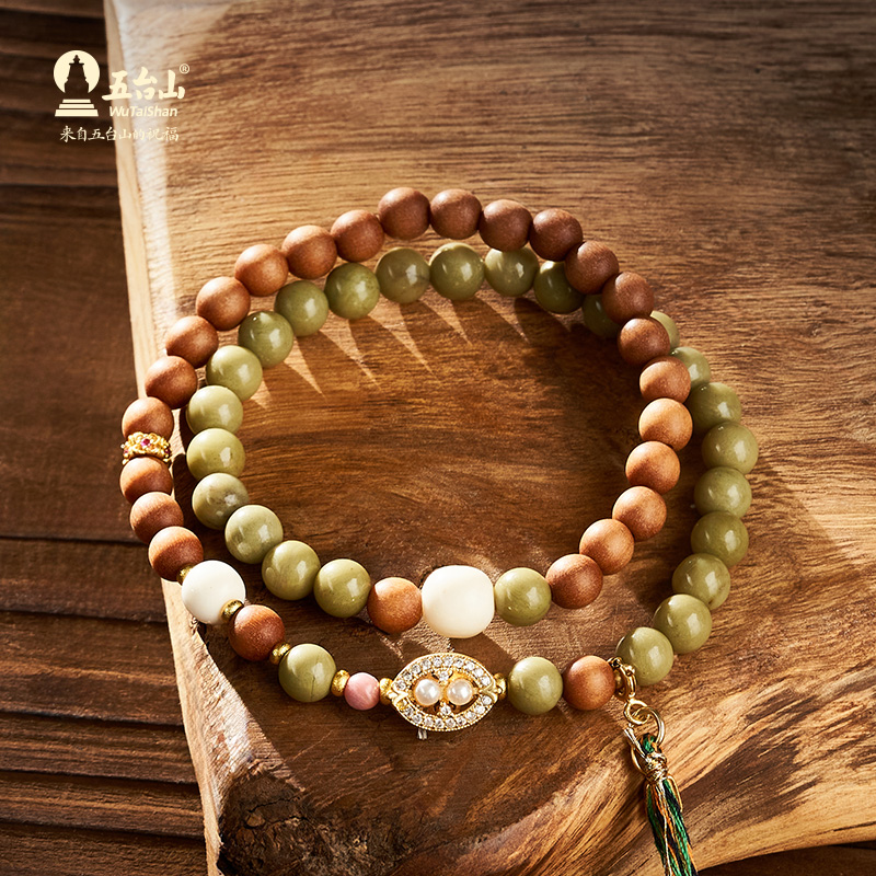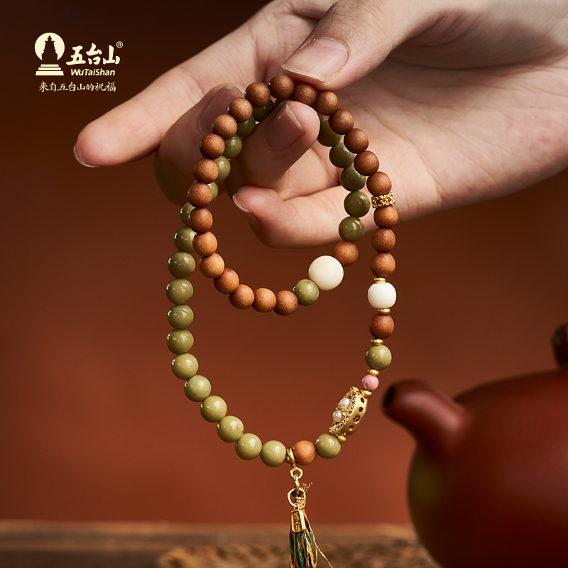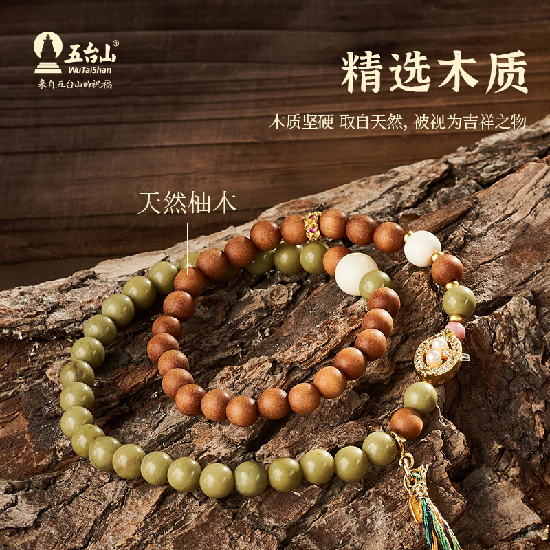 五台山禅意佛珠柚木手串女阿拉善石菩提转运珠手链送闺蜜礼物