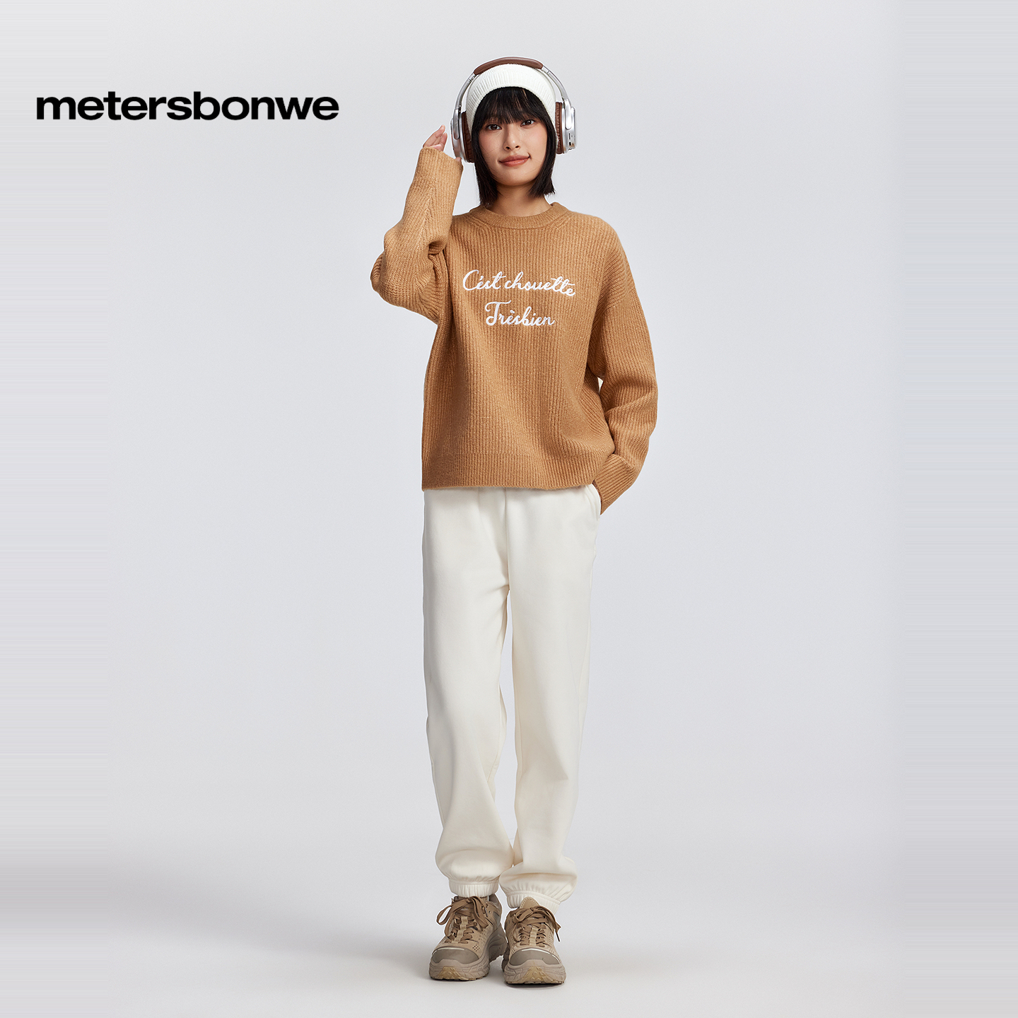 美特斯邦威毛衣女秋冬季节舒适百搭通勤潮流绣字长袖圆领毛衫上衣