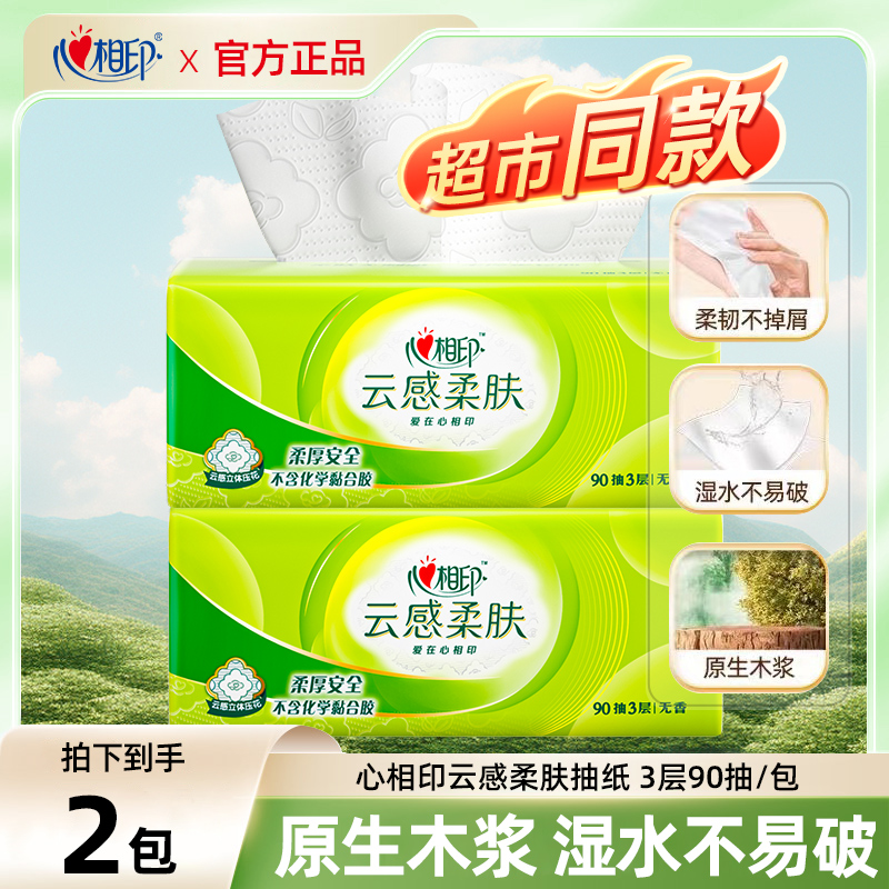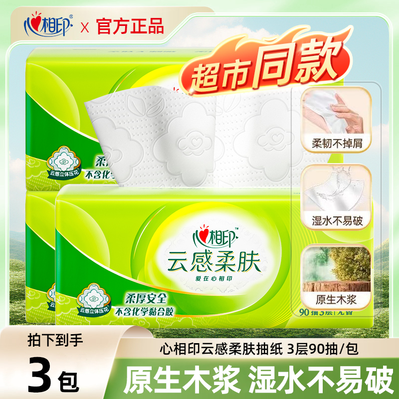 心相印云感90抽3层S码抽纸柔肤餐巾纸加厚厕纸悬挂实惠压花亲肤