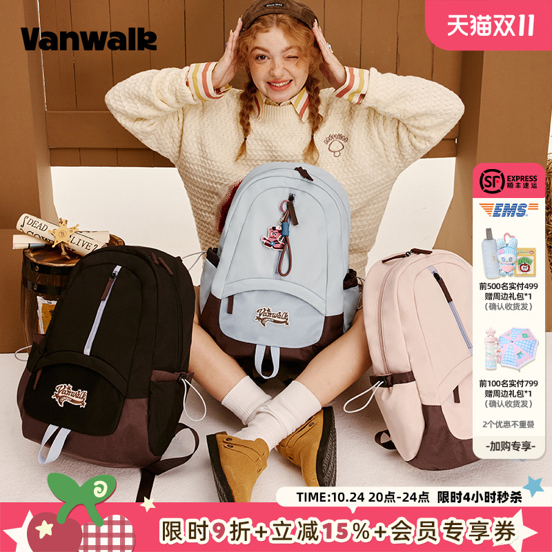 VANWALK牛仔系列 大学生背包双肩包少女新款高级感初中高中生书包