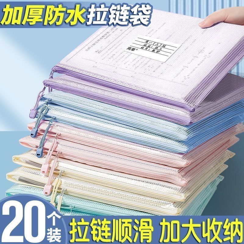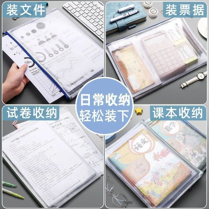 A4文件袋试卷收纳袋拉链式科目分类袋书袋a5透明文具袋档案袋网格塑料办公专用初中生小学生学科分类袋制