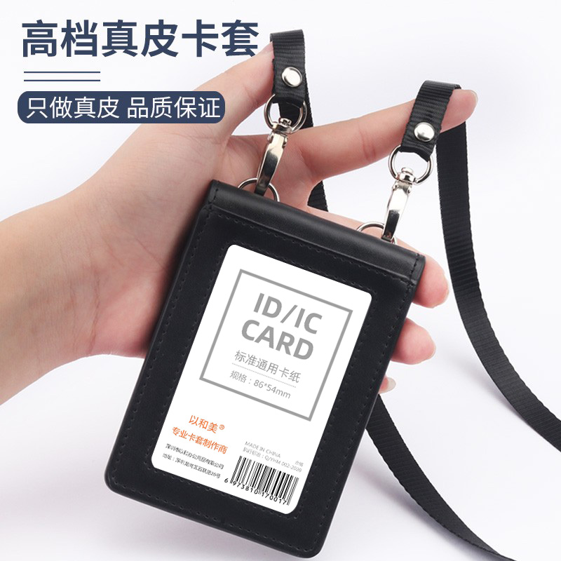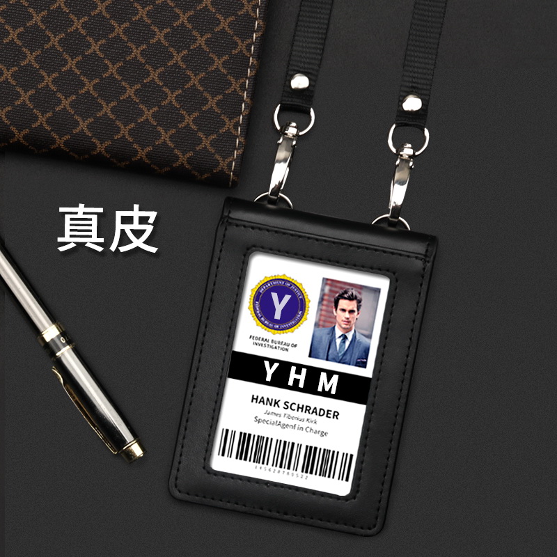 双扣真皮上岗证工作证卡套带挂绳证件套机场员工胸牌胸卡套定制三卡位工作牌皮套吊牌工牌皮质卡包定做挂牌