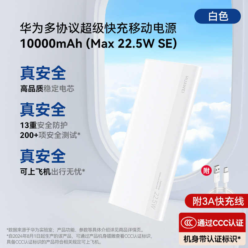 【新国标3C认证】华为充电宝移动电源超级快充22.5w自带线轻薄便携10000毫安大容量可上飞机手机平板超薄小巧
