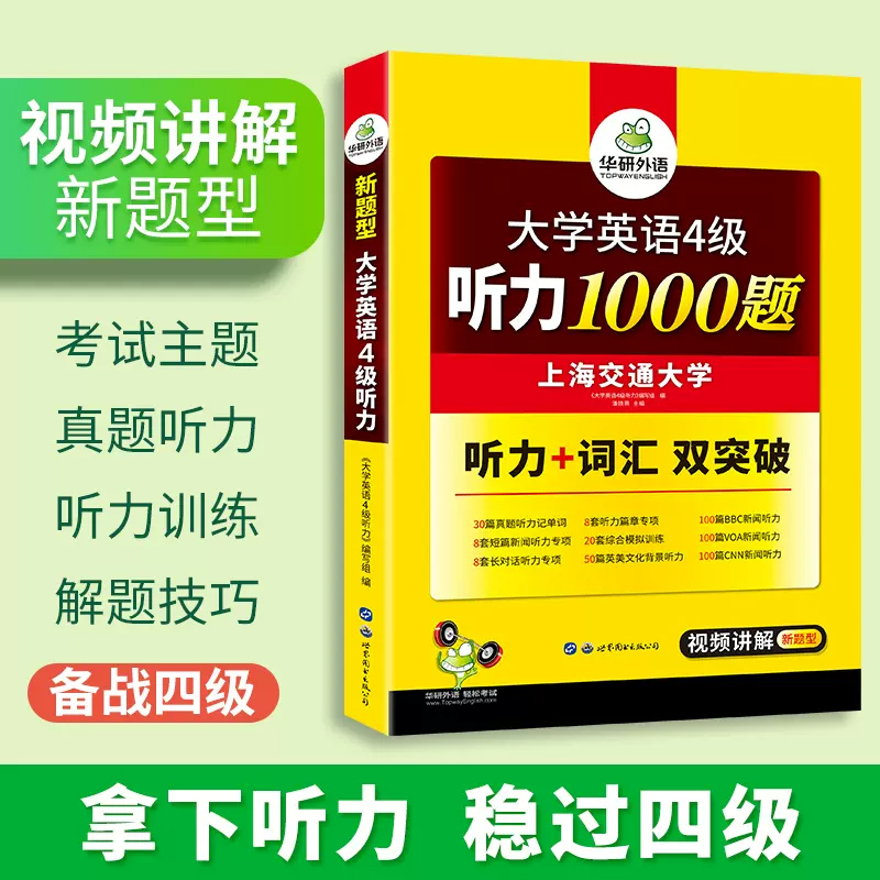 华研外语 英语四级听力1000题专项训练书备考2024.6月 大学英语四级听力强化词汇单词考试真题阅读理解翻译与写作文cet4级资料
