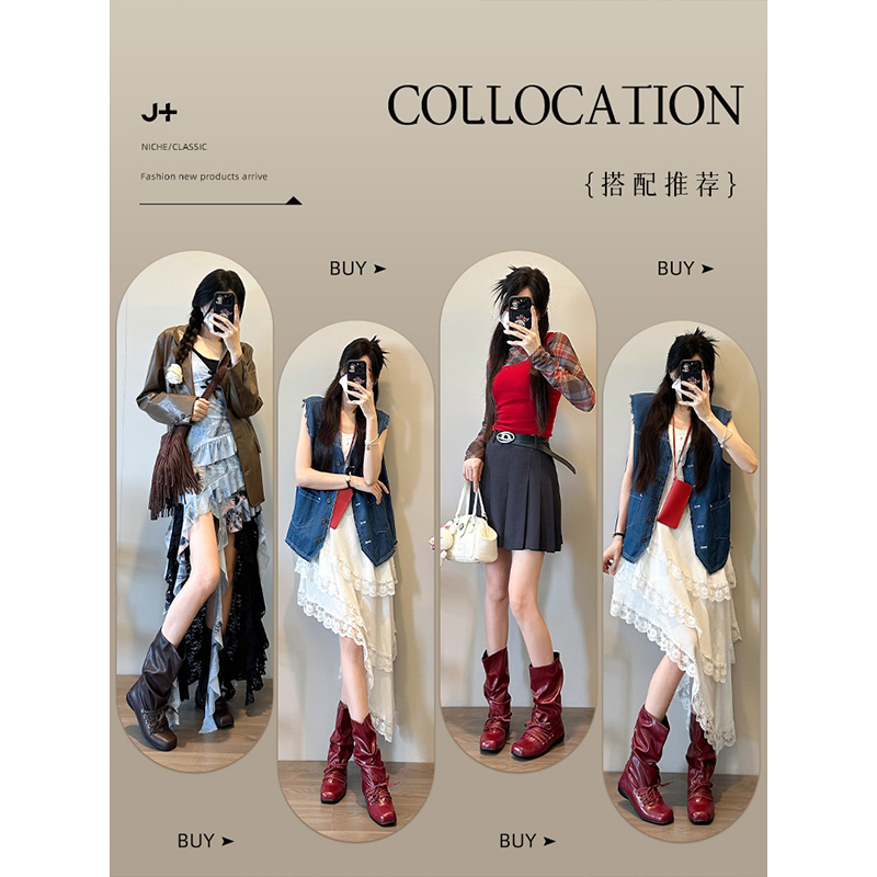 内增高堆堆靴长筒骑士靴子女2025新款秋冬法式绒面西部牛仔长靴女