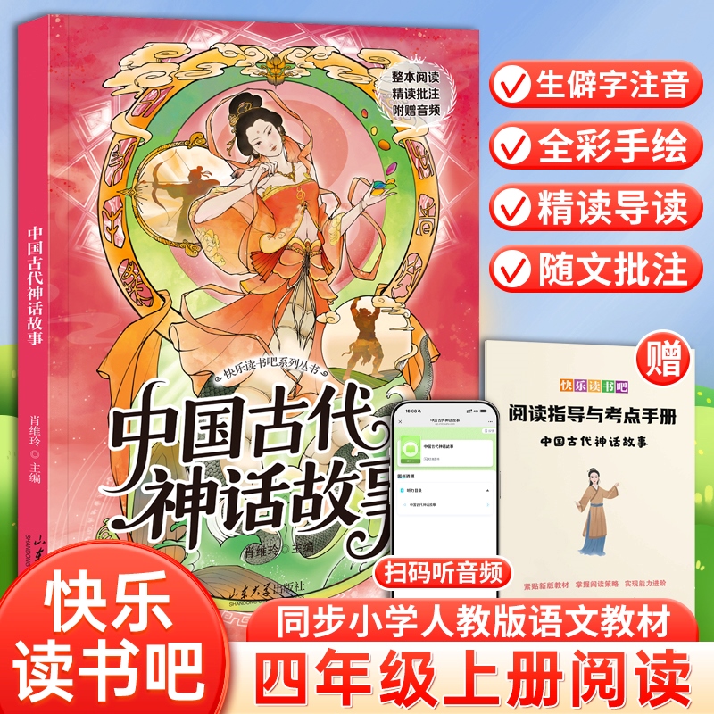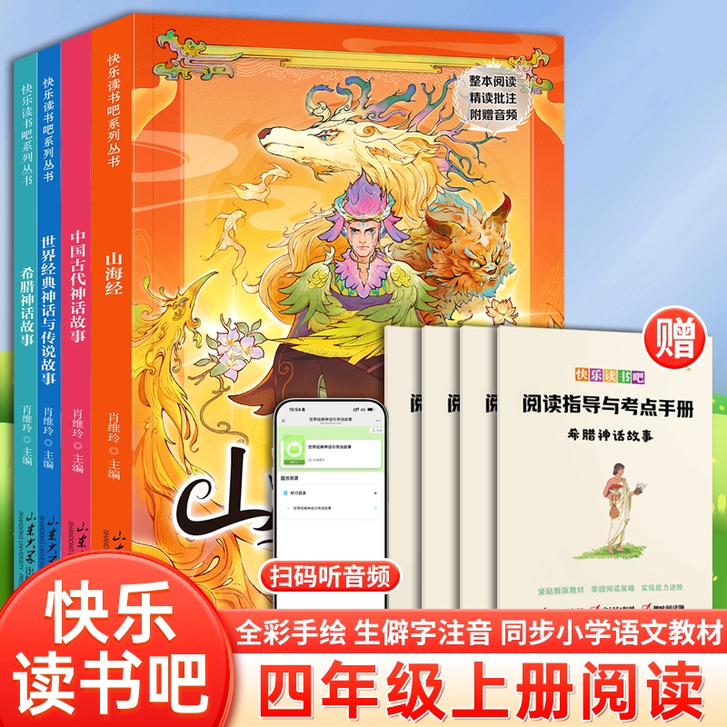 2025课外阅读全套4册四年级上册必读的课外书快乐读书吧山海经彩图注音版正版中国古代神话故事儿童书4年级期童话木头经典作文全集