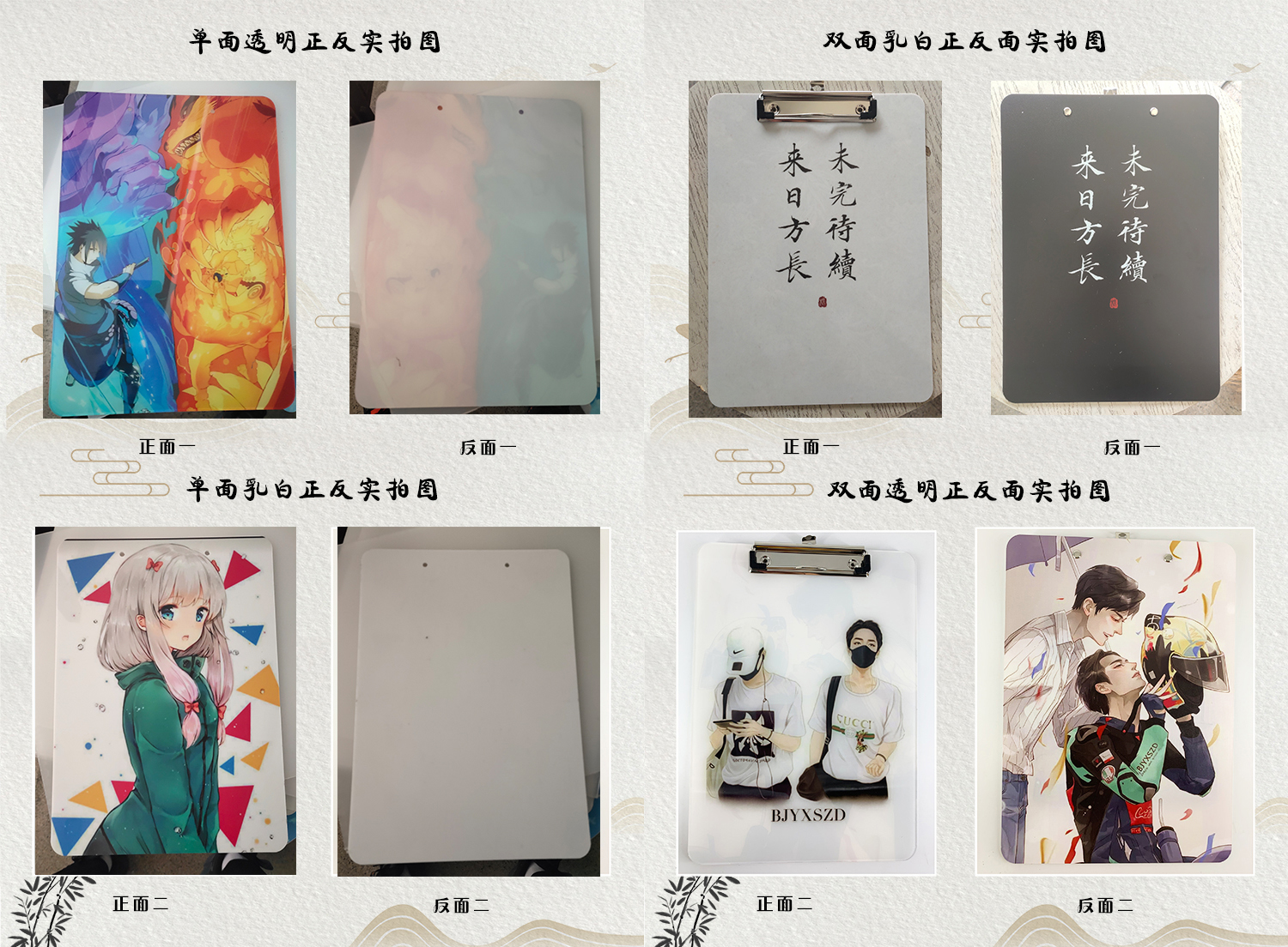 动漫板夹来图定制LOGO学生A4亚克力透明A5夹板写字收纳文件夹垫板