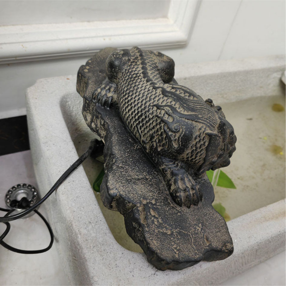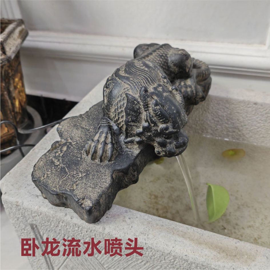 复古卧龙流水摆件水循环鱼缸高档送礼礼品老石槽喷头古法庭院