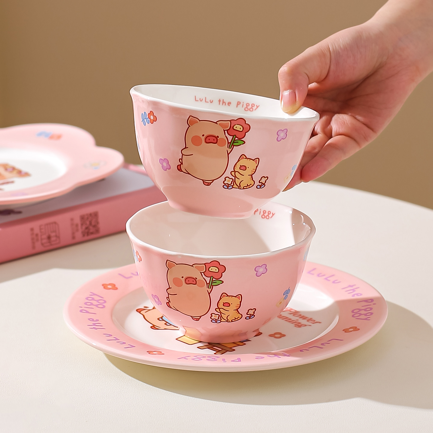 川岛屋&lulu猪联名 可爱餐具套装一人用碗碟礼盒乔迁生日礼物女生