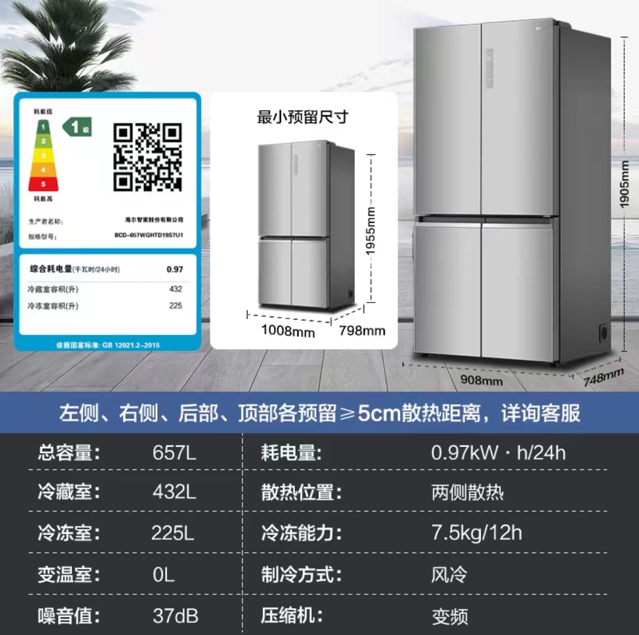 【李佳琦直播间美妆节】海尔539L双开四门一级能效电冰箱