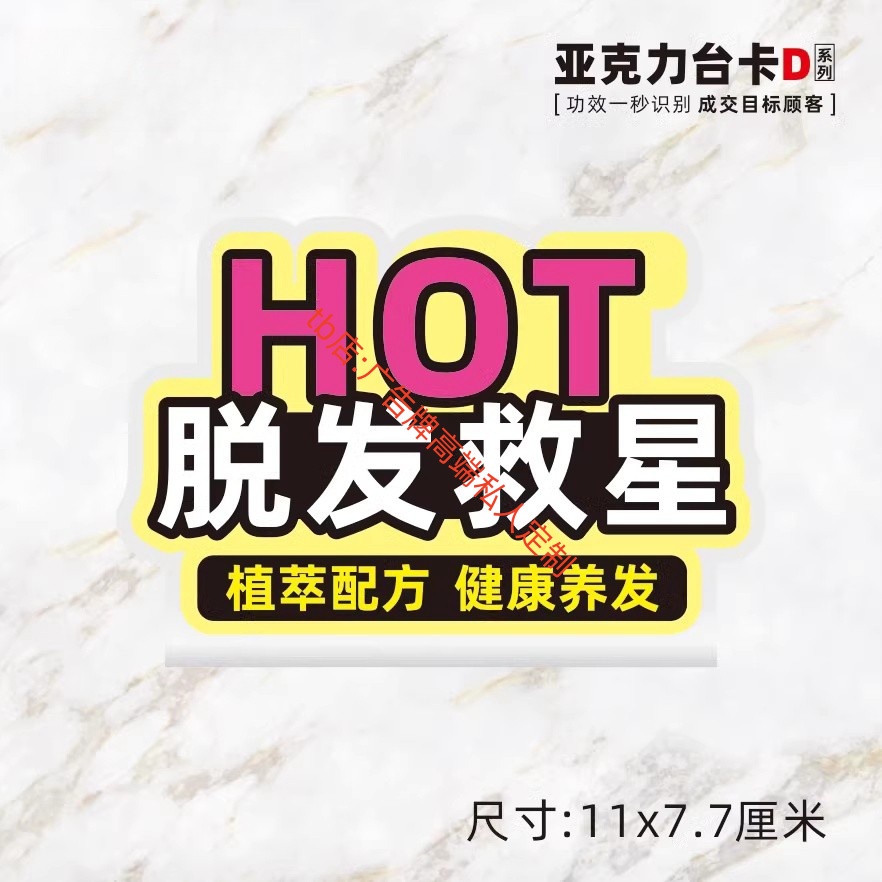 头疗店产品标识牌理发店商品功效头皮无屑推广宣传展示亚克力台卡