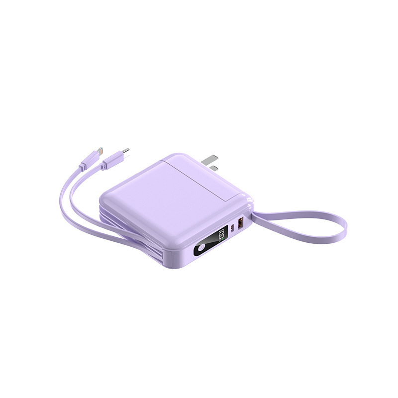 超级快充充电自带插头20000毫安超大容量自带线小巧可爱二合一