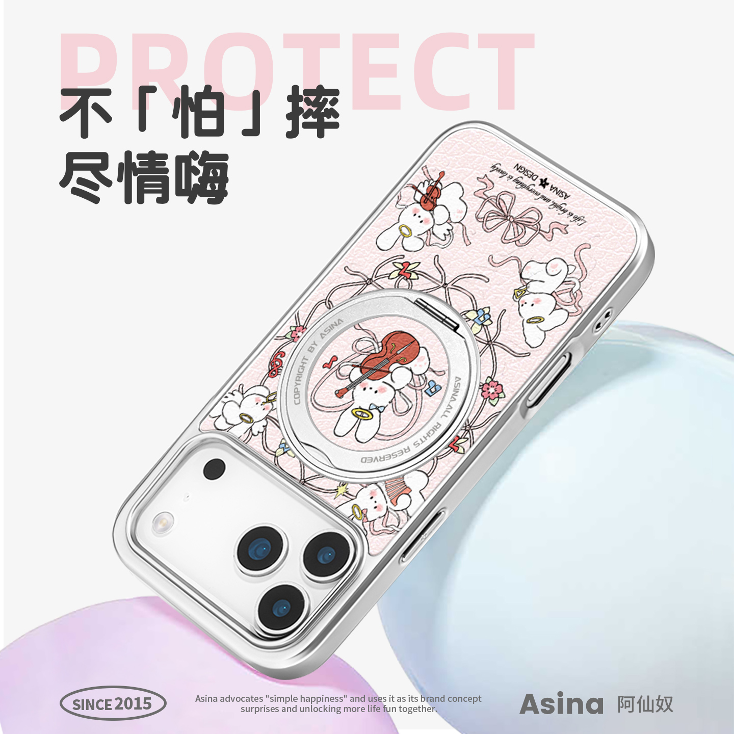 萌兔音乐会适用iphone17手机壳新款17Promax防摔磁吸16Pro卡通旋转带支架14潮牌15Promax素皮保护套13女Co2