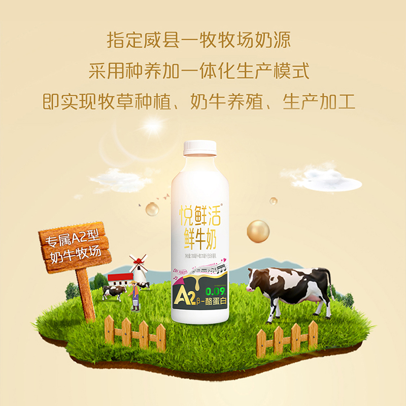 悦鲜活950ml鲜牛奶A2-/950ml分享装儿童学生早餐奶鲜奶生牛乳瓶装