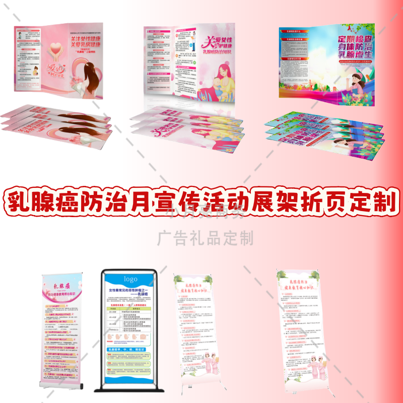 体检中心粉红丝带月呼吁女性按时体检预防乳腺疾病宣传三折页定制