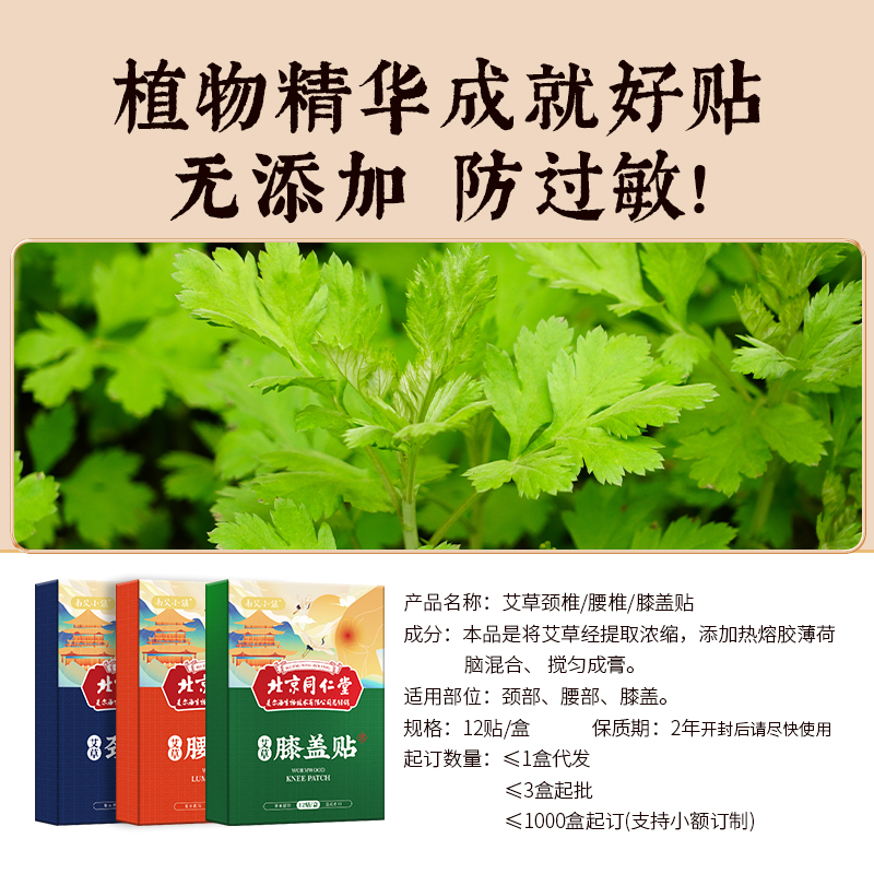 北京同仁堂艾草膝盖贴艾灸贴滑膜疼痛积水积液老寒腿半月板膏药