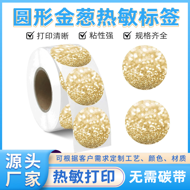 圆形金葱热敏不干胶打印纸闪光热敏有效期标签烘焙贴纸厨房标识可手写可以贴的打印纸高警示药品标签留样标签