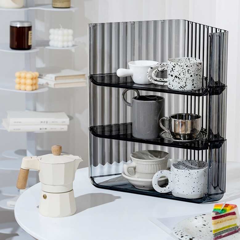 三角杯子收纳架透明台面置物架桌面多层储物杯架可叠加水杯展示架