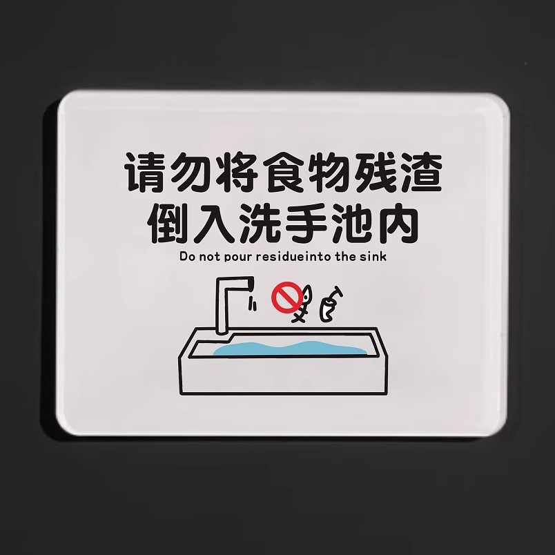 洗手池容易堵塞请勿乱扔残渣提示牌以防堵塞厕所标识牌标语贴纸