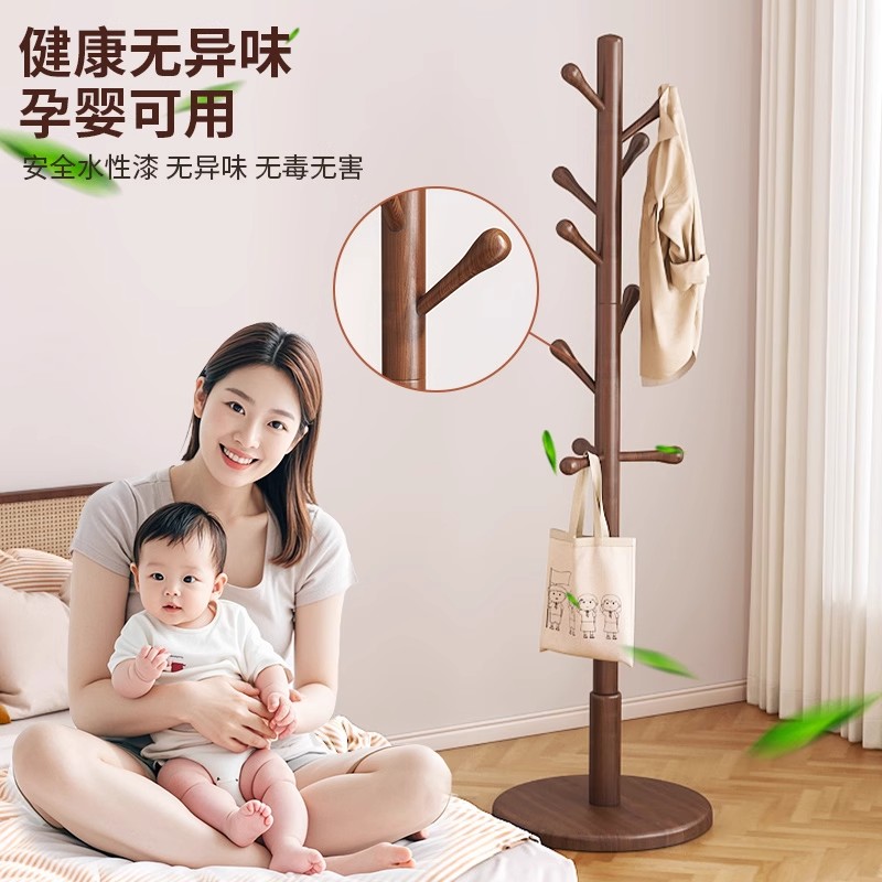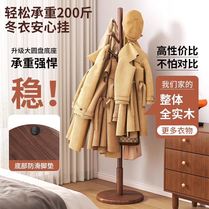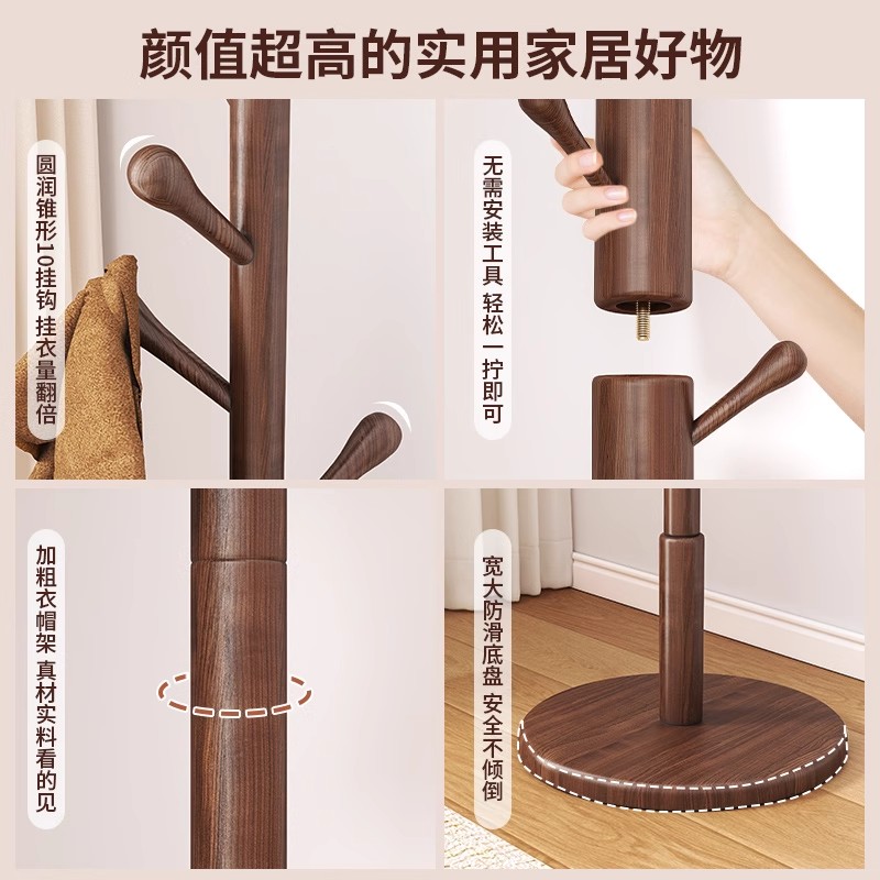 实木挂衣架卧室落地家用加厚立式衣帽架办公室挂衣服置物架子房间