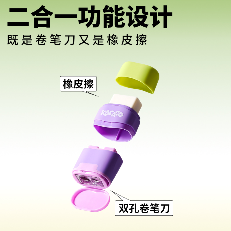 晨光小魔盒橡皮卷笔刀二合一Kacaco双孔削笔器带橡皮学生用多功能儿童多色转笔刀可换芯橡皮素描学习文具用品