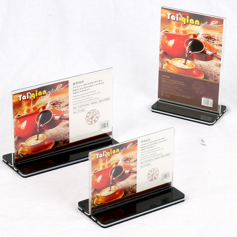 A4亚克力台卡架j展示牌抽拉台签Az5双面酒水牌桌牌T型立牌透明A6
