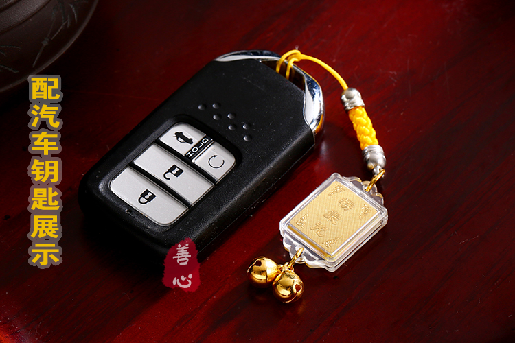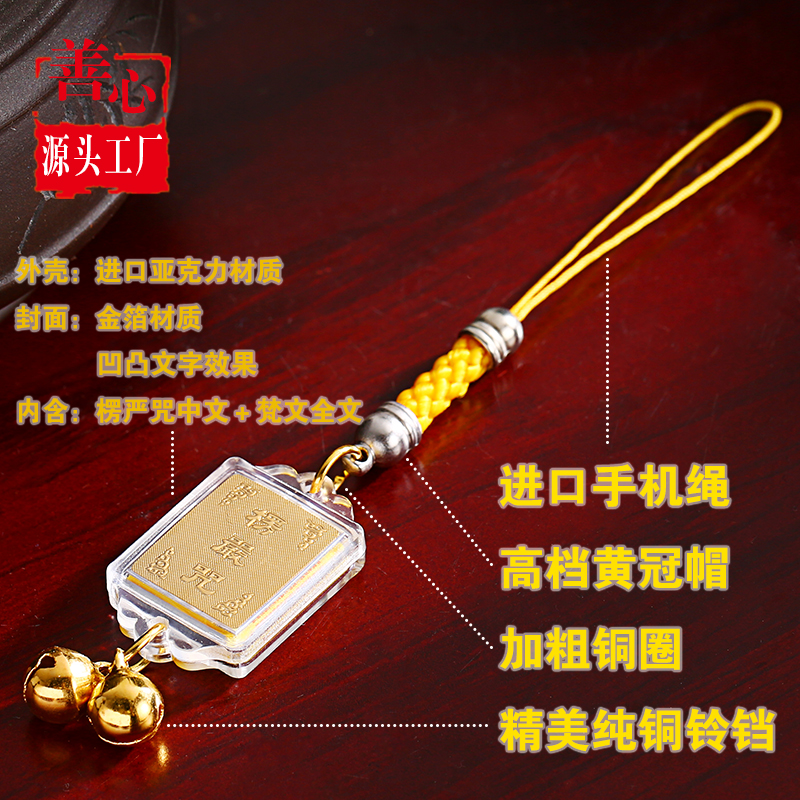 楞严咒手机挂件 楞严咒钥匙挂件 护身符 金箔方形阿字铃铛吊坠