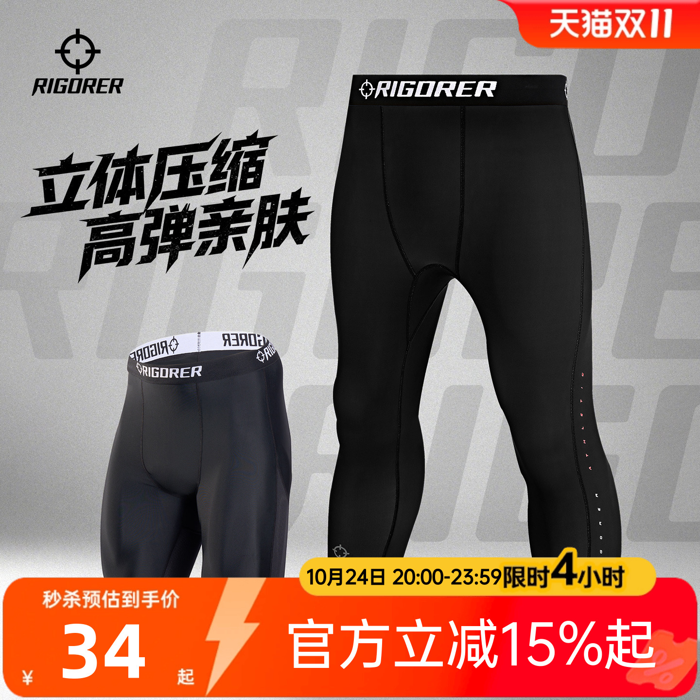 准者速干七分紧身裤秋季健身裤篮球五分压缩裤打底裤男透气跑步裤