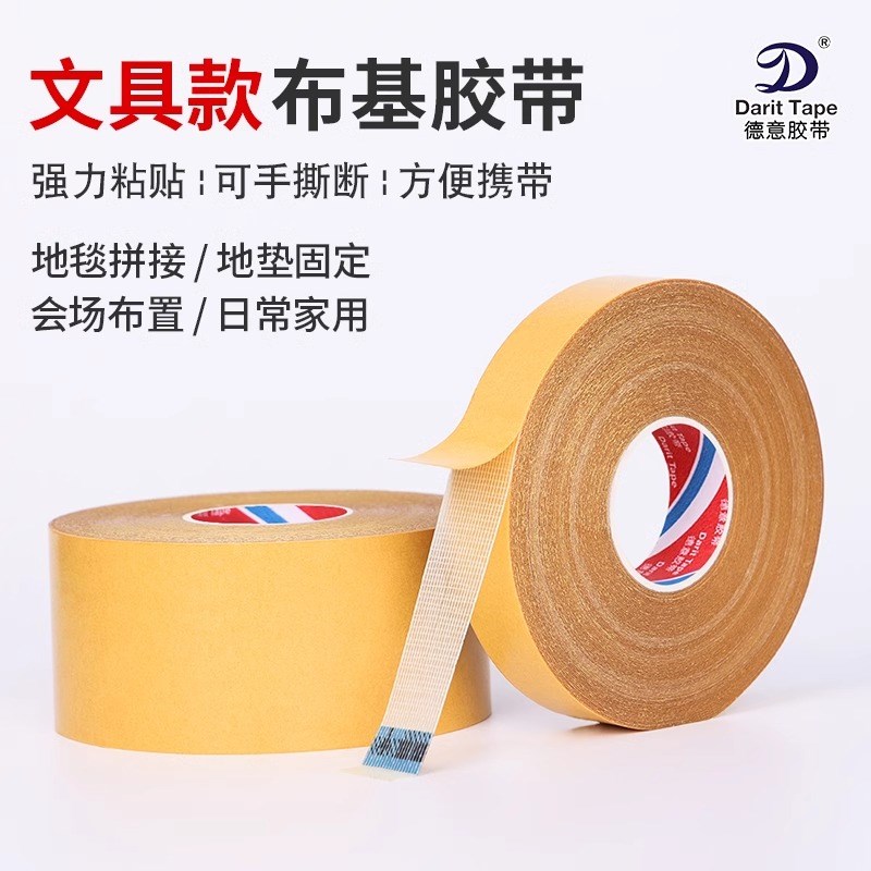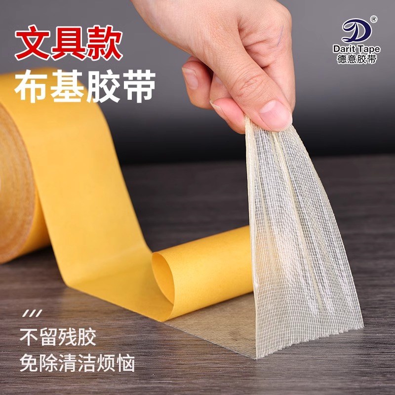 强粘力布基双面胶带高粘度编织布黄色透明网格地毯地板革拼接防水