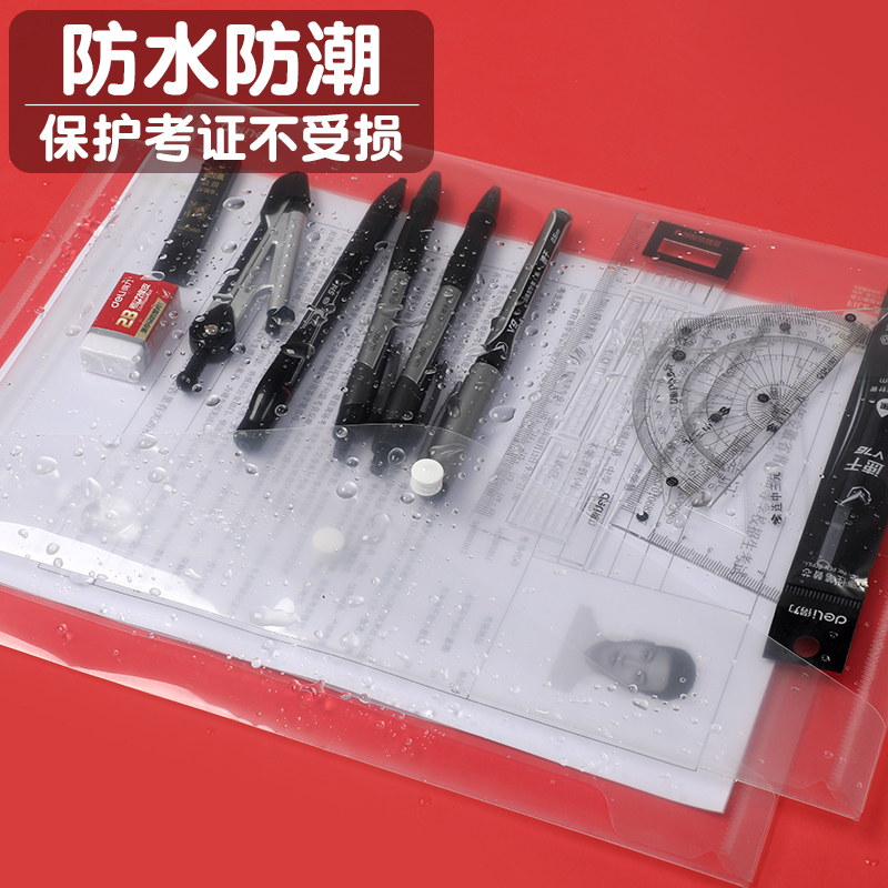 得力考试文具透明收纳袋中考高考专用A4学生按扣款文件资料准考证试卷袋子大容量塑料防水手提网格包加厚网纱